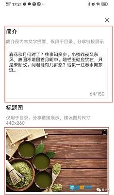 3、简介及标题图发布时可对简介及标题图进行编辑和选取。点击“确定”即可发布本篇文章。