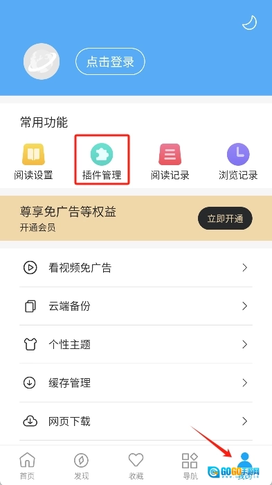 紧接着打开应用,在“我的”页面里点击“插件管理”选项,进入插件菜单。