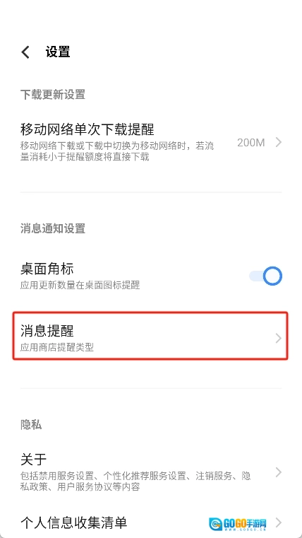 进入设置中心后,在页面里找到并选择“消息提醒”这个菜单。