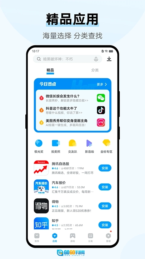 汇聚了大量优质应用,涵盖游戏、社交、生活、工具等多个领域,满足用户多元化需求,轻松找到所需应用。