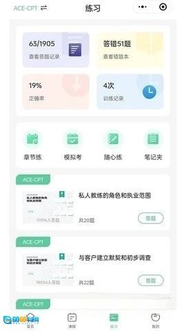 四大认证备考神器是专门为众多备战专业认证考试的小伙伴们打造的智能学习平台。要是你正被NSCACSCS、ACECPT、NSCATSAC、NSCACPT或是国家健身教练认证考试所困扰,这款软件绝对是你值得信赖的备考好帮手!