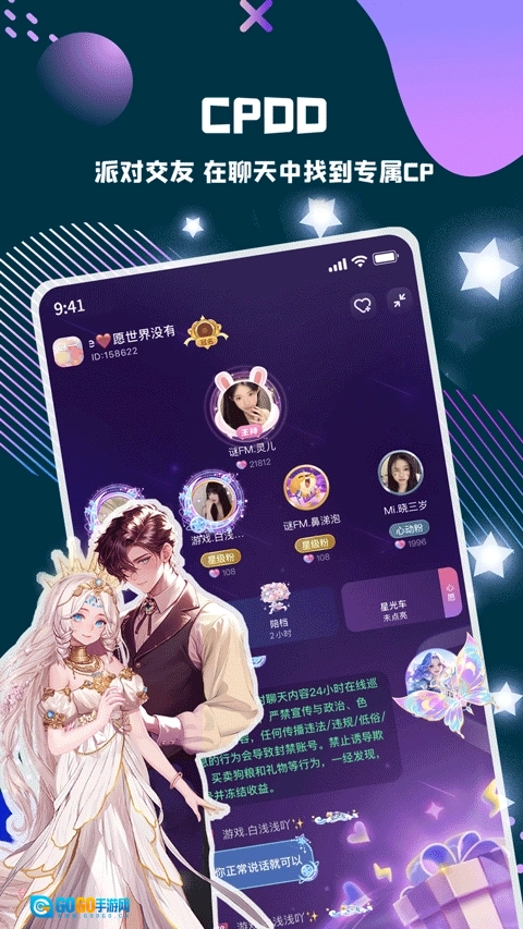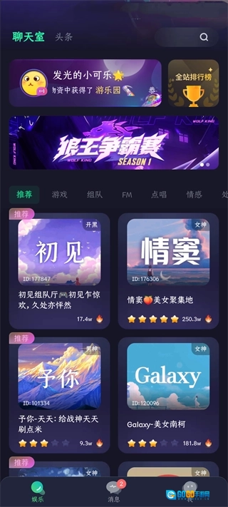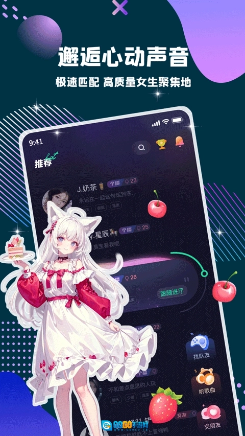 多人语音聊天室,用声音结识更多有趣的灵魂。各语音聊天室支持语音连麦、恋爱相亲、CP配对,还有甜蜜电台,年轻人的专属派对正等你加入。