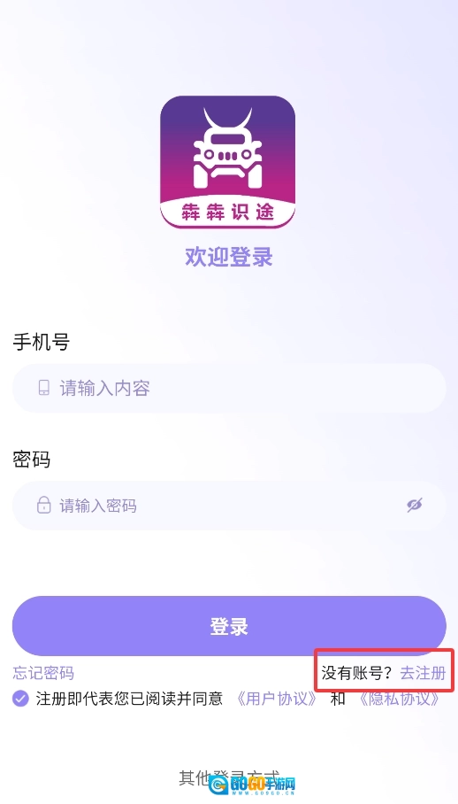 启动应用后会进入登录页面,点击“注册”按钮就能开启账号创建的流程。