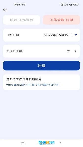 可计算指定日期前后N天的具体日期时间,同时展示工作日、法定节假日以及周末双休对应的具体日期时间。