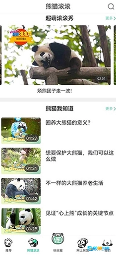 打开熊猫频道,进入熊猫滚滚界面,就能了解大熊猫的科普知识。