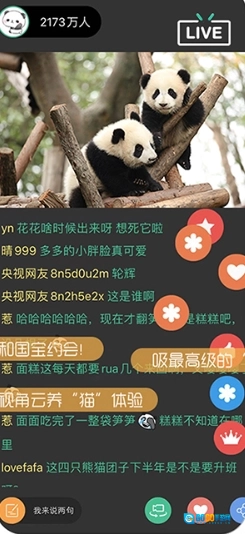 切换直播界面,可以在线观看熊猫,还能发弹幕交流。