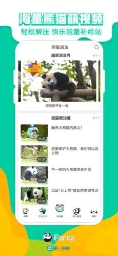 在熊猫频道客户端里,你可以实时了解大熊猫的日常生活,这里有全方位的熊猫直播内容。此外,iPanda熊猫频道还会不定时对大熊猫野化放归、繁育交配以及新生熊猫宝宝亮相等热点事件开展直播活动。
