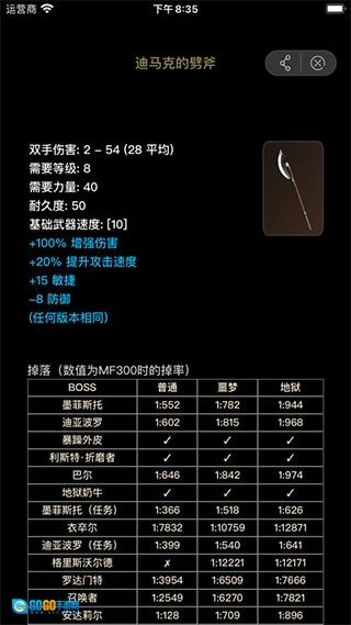 新增了掉落查询功能,现在在每个物品的详情页面,都能看到会掉落该物品的怪物以及对应的掉率信息。