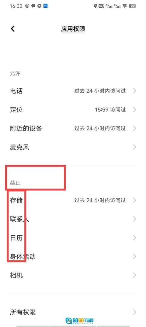 这里面给用户提供了可运行和可禁止的权限选项,我们直接查看禁止权限的部分,能发现储存权限处于被禁止状态,接下来点击进入存储权限设置界面。