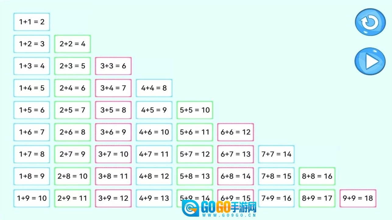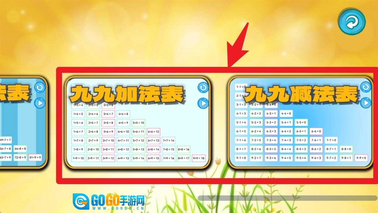 可以滑动选择“九九加法表”或“九九减法表”模块,助力孩子熟练掌握基础计算公式。