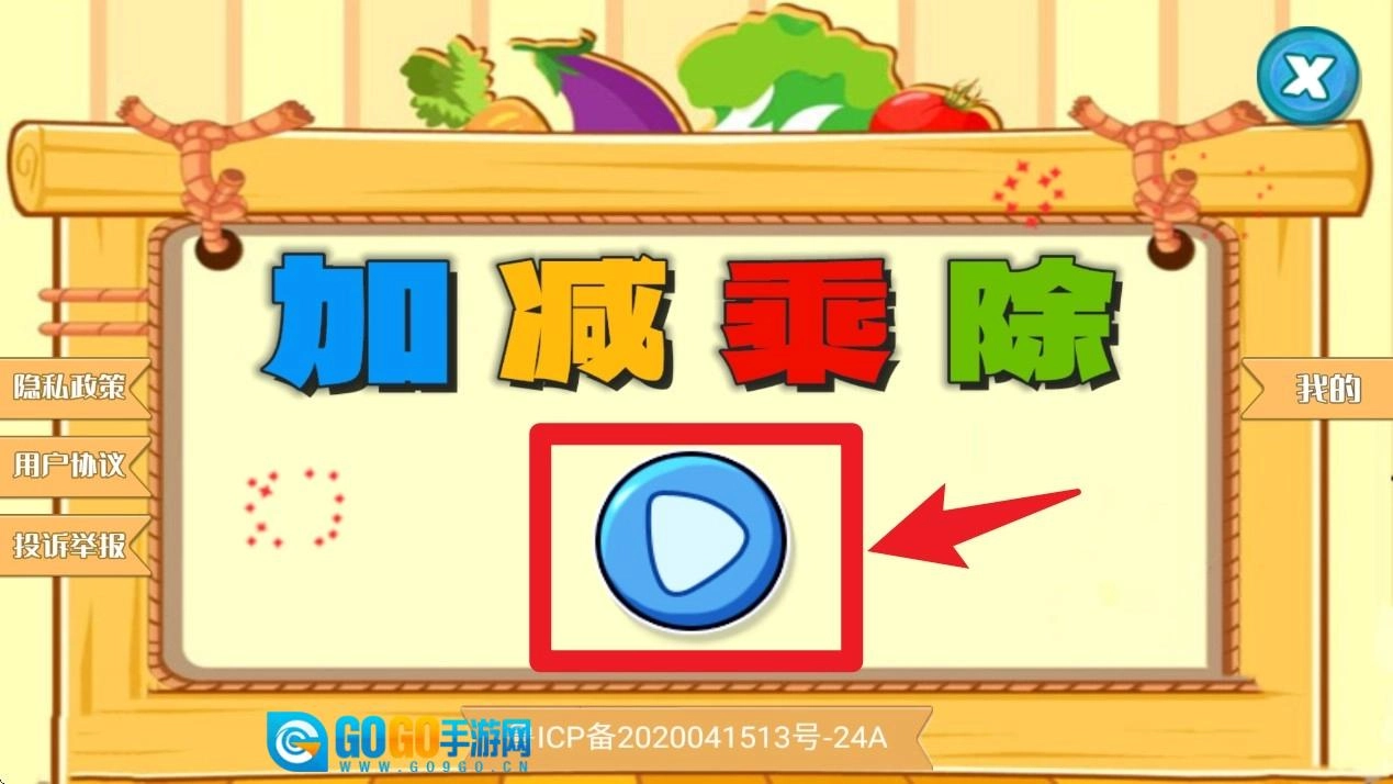 打开应用后,点击首页中间位置的蓝色播放按钮,就能进入四则运算练习的主页面了。