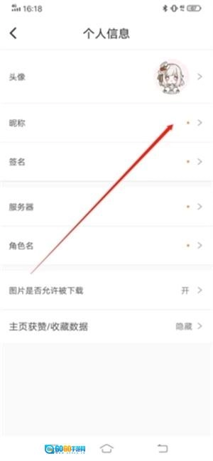在个人信息页面,找到“昵称”并点击进入;