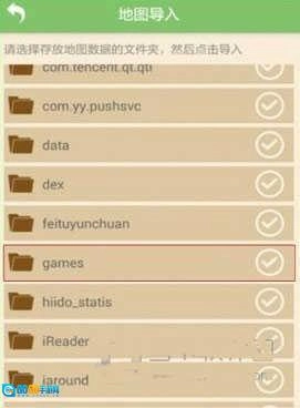 选择游戏地图的存放文件夹,安卓设备的路径通常在/games/com.mojiang/minecraftWorlds文件夹内。