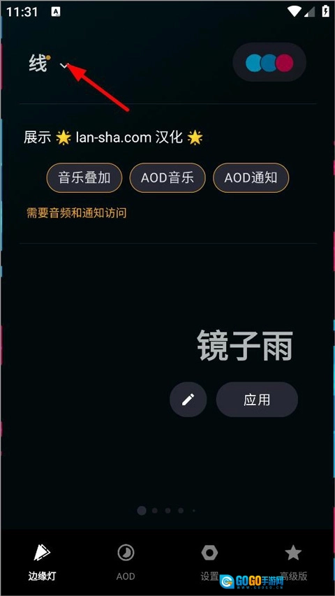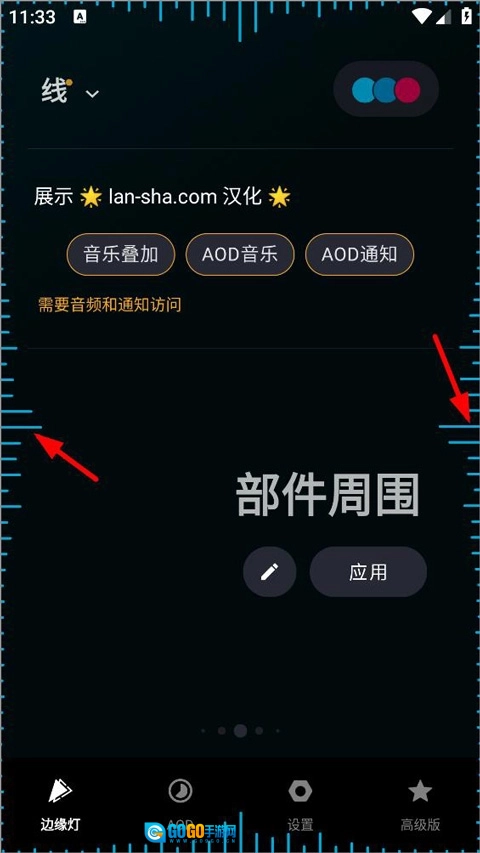 边缘灯可设置为线、粒子、亮色、波浪等样式。