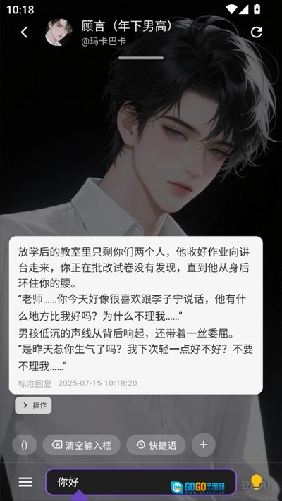沉浸式剧本互动体验:平台为用户准备了多样的剧本资源,用户可依据个人偏好挑选心仪剧本,与虚拟角色展开互动交流。这种互动形式融合了文字冒险与角色扮演的特色,助力用户深入故事情境,感受不同角色的人生轨迹与故事脉络。