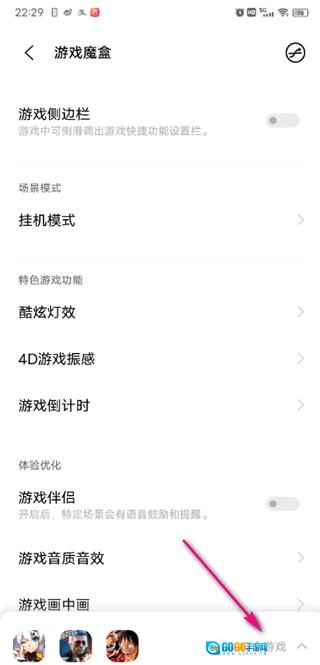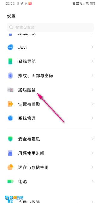 在设置中找到游戏魔盒点开;
