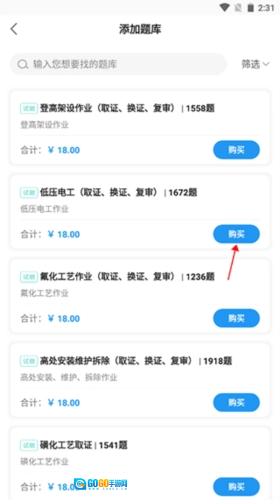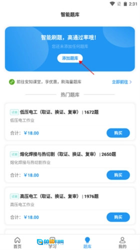 你可以先挑选想添加的题库,接着点击其右侧的购买按钮,完成购买后就能将该题库加入进来了。