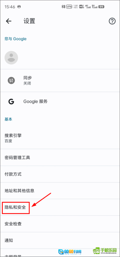 接着点击下方的隐私和安全;