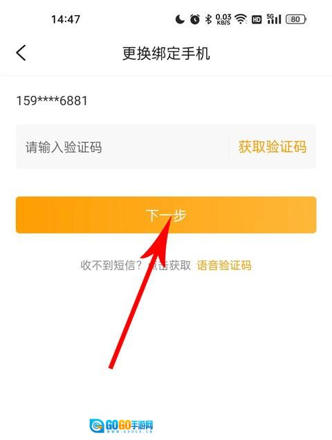 接下来我们会进入更换绑定手机的页面,需要先获取验证码,接着输入验证码,再点击下一步。
