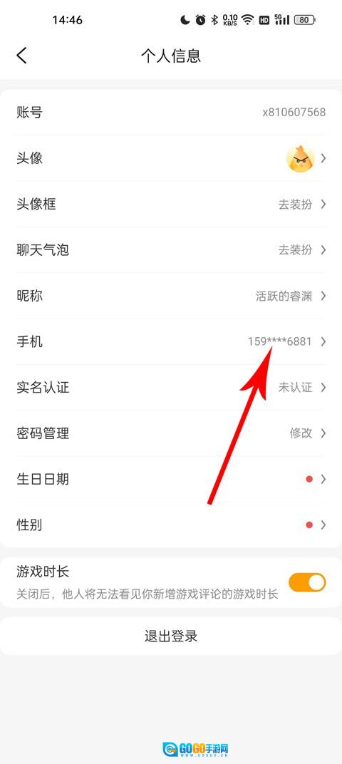 在个人信息页面里,从顶部开始往下数到第六个选项,找到“手机”这一项,然后点击进入。
