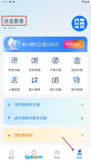 点击底部的“我的”选项进入个人页面,完成登录操作后,就能查看所有功能、所有拼图等选项,还能看到证件照制作记录和剩余次数等相关内容。