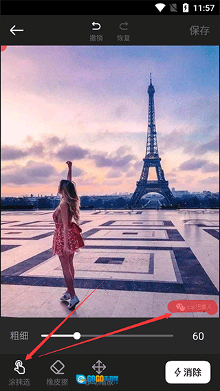 选择“涂抹选择”工具,然后精准涂抹覆盖水印区域;