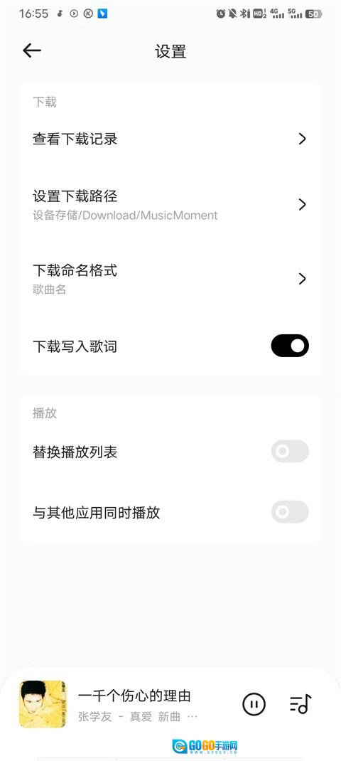 之后回到首页,点击齿轮样式的设置按钮,用户能够自定义路径、命名格式、歌词等内容。