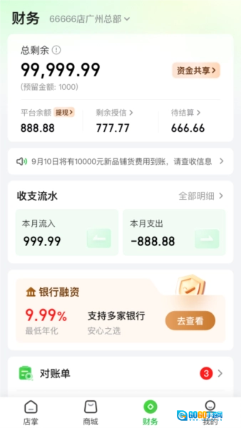 账户查看功能支持实时查询个人账户信息,其中包含详细的销售额与支出统计数据。