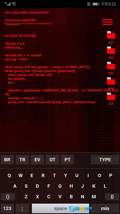 选择右下角的【min】选项,就能隐藏键盘;点击【+号】图标,则可恢复键盘。这样操作是不是更有专业黑客的范儿了?以上就是geektyper手机版的使用方法。