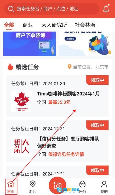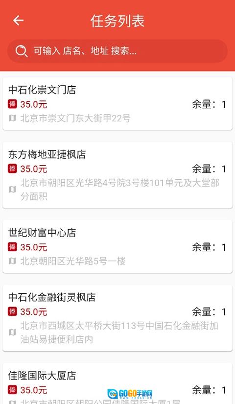 接下来会进入任务列表,你可以输入店名和地址进行搜索,也能直接挑选下方的店铺来领取。