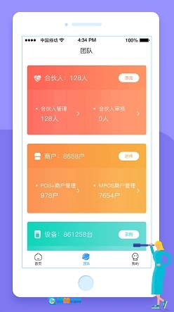商户可以自主的添加合伙人,快速的组建自己的团队;