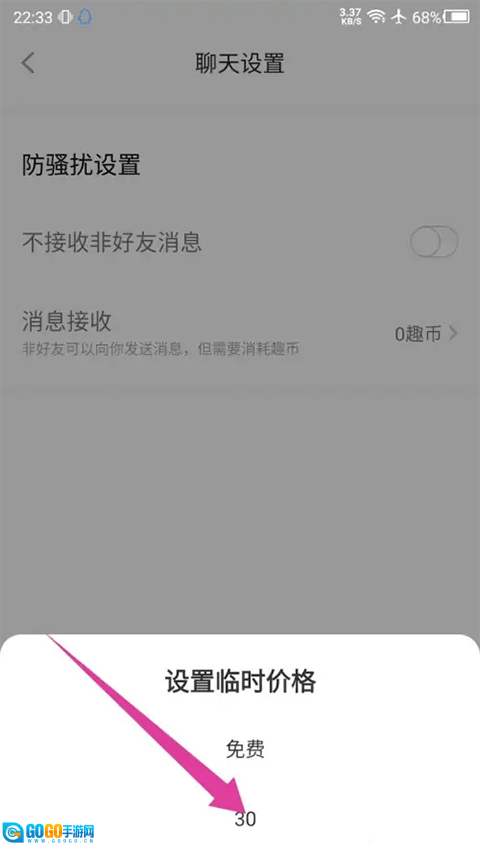 将免费的0趣豆调整为30趣豆,如此一来和对方聊天就需要收费了。