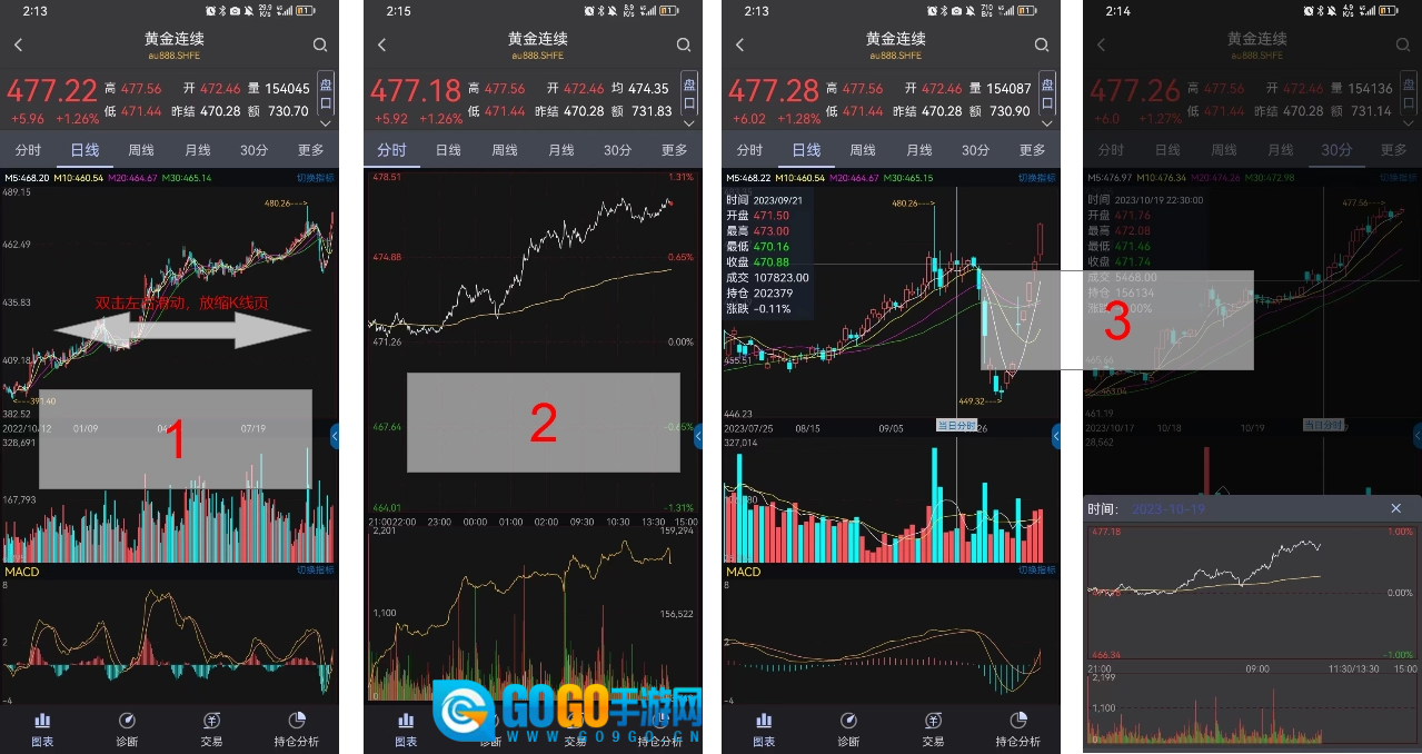 双击左右滑动,放缩K线页