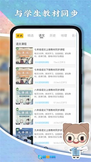提供与中学教材同步的电子课程内容及视频资源,涵盖语文、历史、地理等学科。