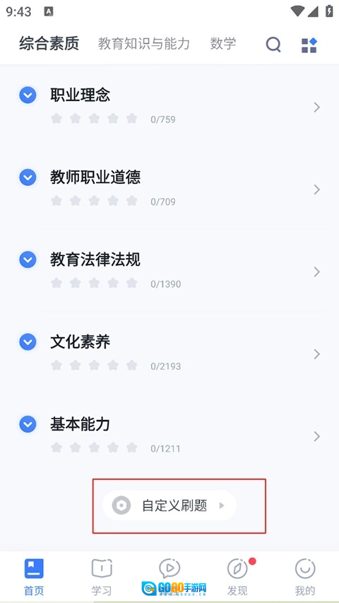 1、在首页下滑到最下方,点击自定义刷题。
