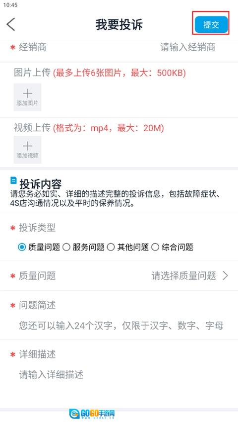 最后填写“投诉内容”,建议尽可能详细描述具体情况,点击“提交”按钮,就能完成投诉操作。投诉提交后,可在“我的”页面中点击“我的投诉”选项,查看投诉的处理进度。