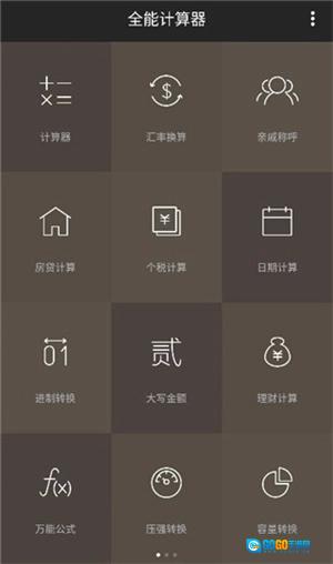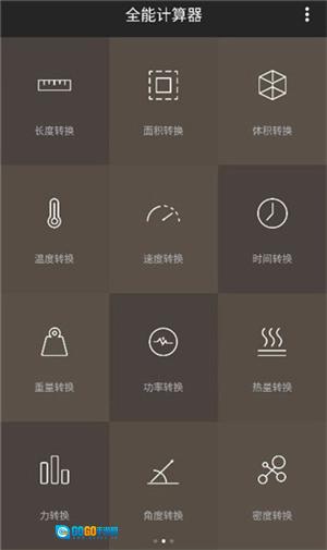 大家安装进入这款计算器后,会发现它有三页功能界面,用户能在这些页面里找到各类可用于计算的“单位”选项。