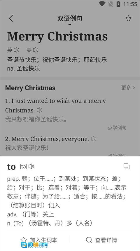 接下来,从查询到的具体单词里选一个点击,就能查看它的详细释义了。