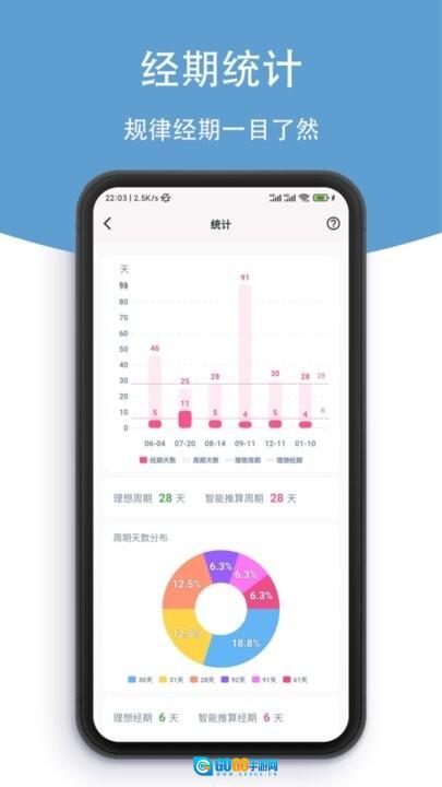 支持经期预测、记录与自定义提醒功能,同时可记录生理期日记及身体状况。