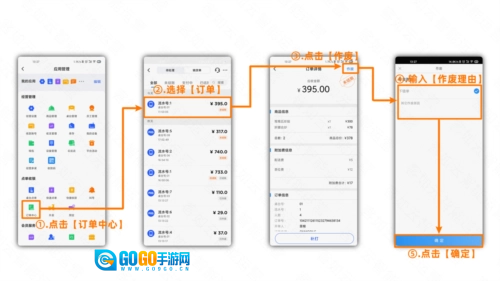 点击【订单中心】,接着选择【待作废订单】,然后点击【作废】按钮,输入【作废理由】后,最后点击【确定】即可。