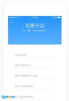掌上客如云页面,输入店铺信息注册成为客如云商户。
