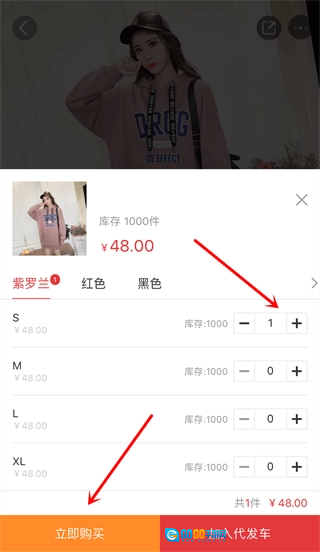 挑选好您想下单的商品的颜色、尺码和数量,接着点击“立即购买”按钮。