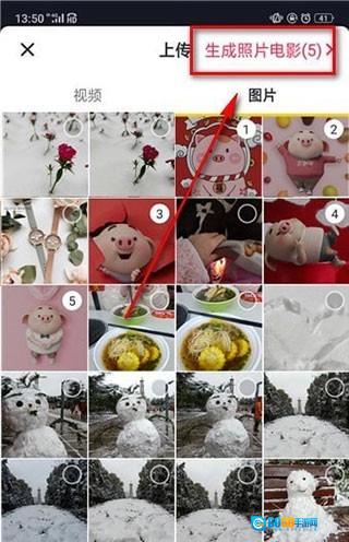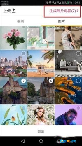 选择图片后点击右上方的【生成照片电影】;