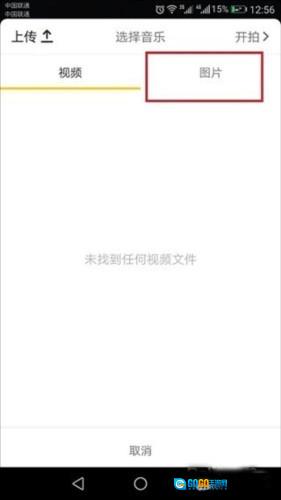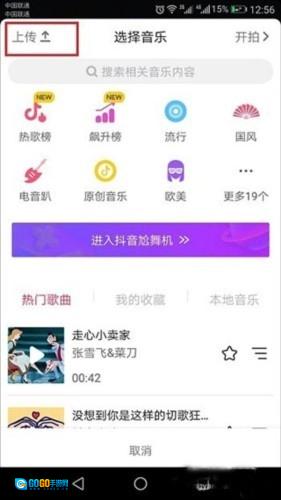 进入选择音乐界面的第二步后,点击左上方的“上传”按钮。