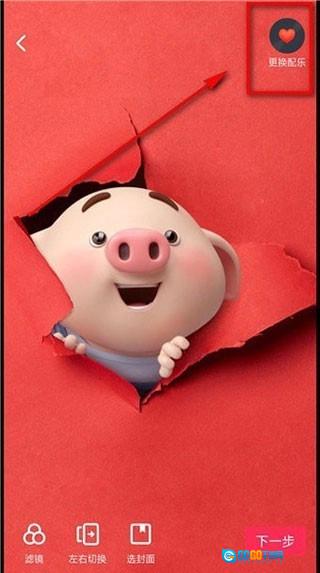 我们能看到右上方有个用于更换更合适配乐的图标,点击【更换配乐】即可。