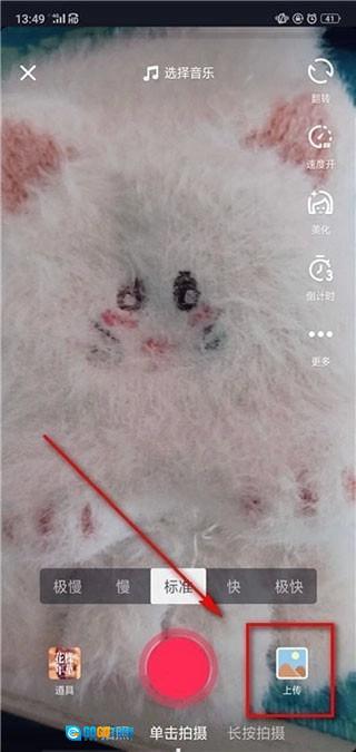 进入拍摄视频界面后点击右下角的【上传】;