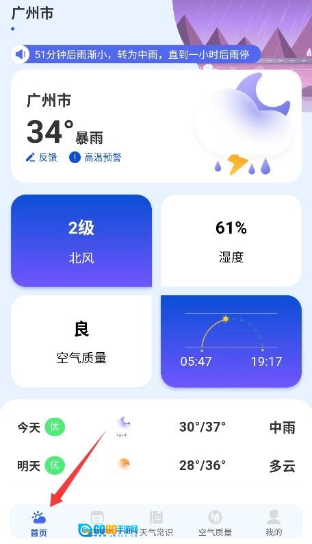 在天气主页,你可以直观地看到当前的温度、湿度、风速等实时数据,还能了解未来24小时的天气预报。