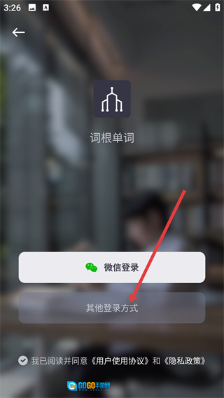 在登录界面,需先勾选【用户使用协议】与【隐私政策】,之后可选择【微信登录】,也能点击【其他登录方式】来切换不同的登录途径。