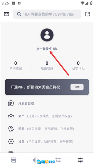 进入该界面后,点击【点击登录/注册】按钮,即可进行账号登录操作,同时还能查看会员等相关功能的入口。