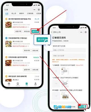 用户在完成下单操作后回到软件界面,点击底部的“作业订单”选项,接着找到刚才报名的店铺,最后点击提交作业按钮即可。